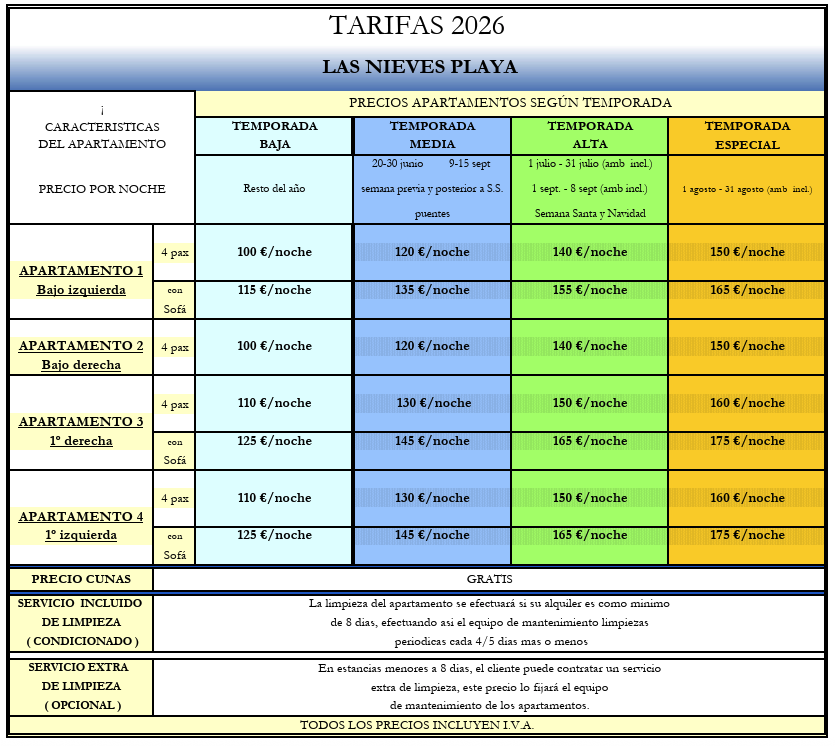 TARIFAS EN «FINCA LAS NIEVES»